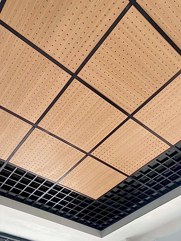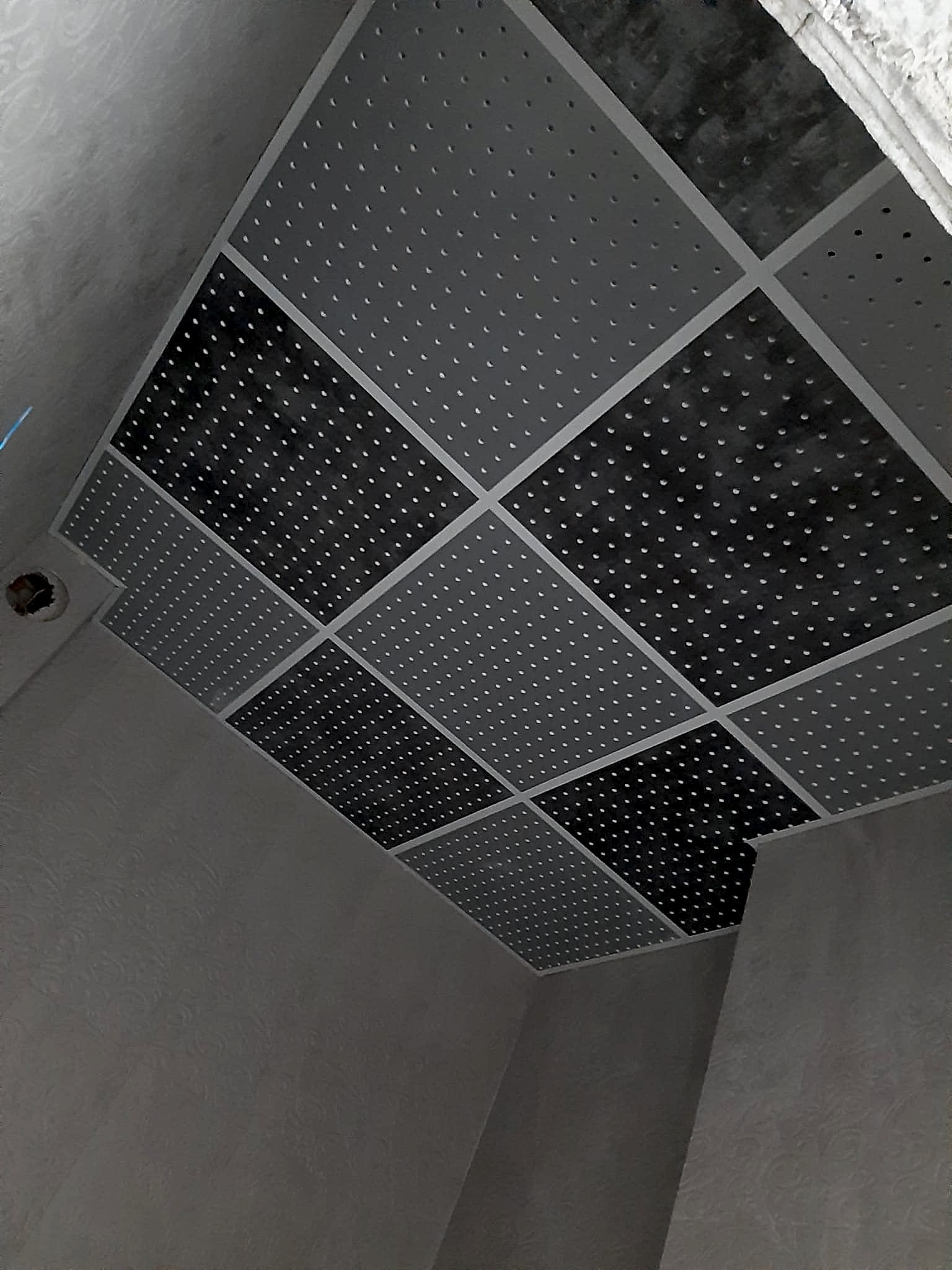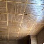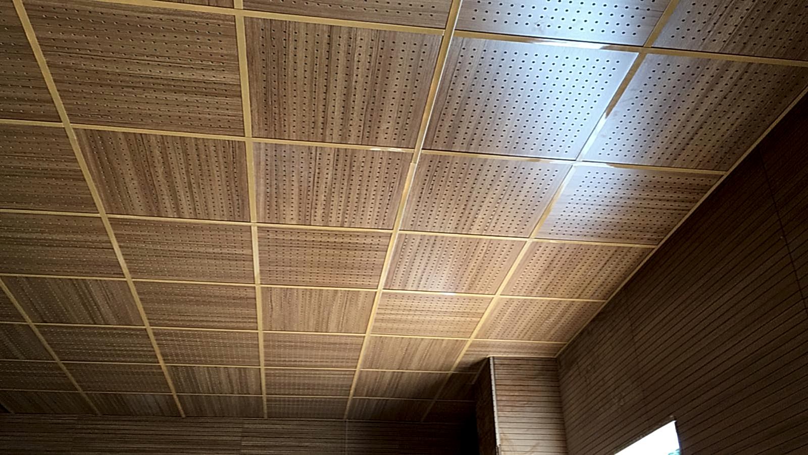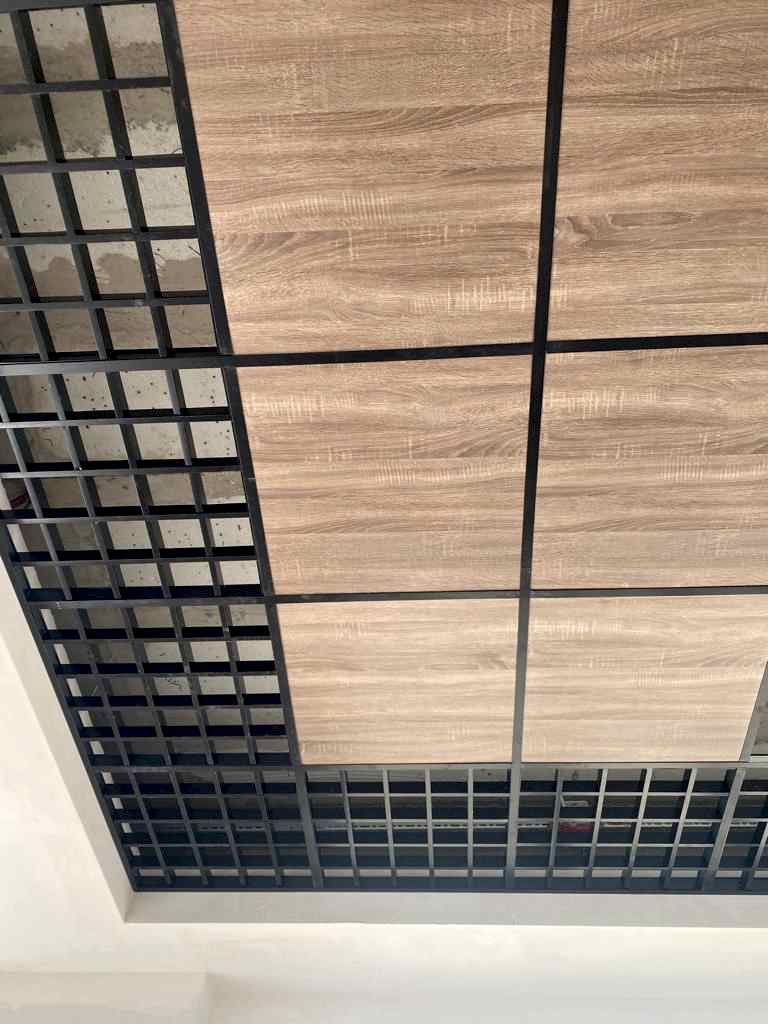 Arka Yüzü ve Kenarları Pvc Kaplı, Ön yüzeyi Fırınlanmış Ahşap Desen Lamineli Alçı Tavan Karosu Çevre alüminyum L profil, çevre duvarları üzerine hortum terazisi ile işaretlenen çizgi üzerinden dübel ve vida ile sabitlenir. Askı çubuklarının yerleri 120cm. aralıklarla tavanda (aydınlatma, seslendirme benzeri tesisatlar dikkate alınarak) yerleri belirlendikten sonra askı çubukları monte edilir. Ayarlanabilir çiftli yaylı maşa askı çubuklarına gerildikten sonra ana taşıyıcı T profili yaylı maşaya asılır. Karolajı oluşturan 120mm.\'lik ve 60mm.\' lik ara taşıyıcı T profillerin montajı yapılır. Ön Yüzeyi Fırınlanmış Ahşap Desen Alçı tavan karosu