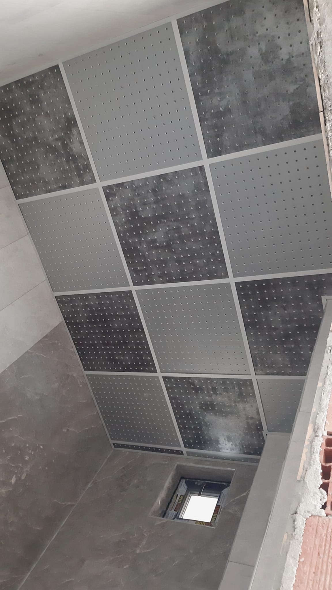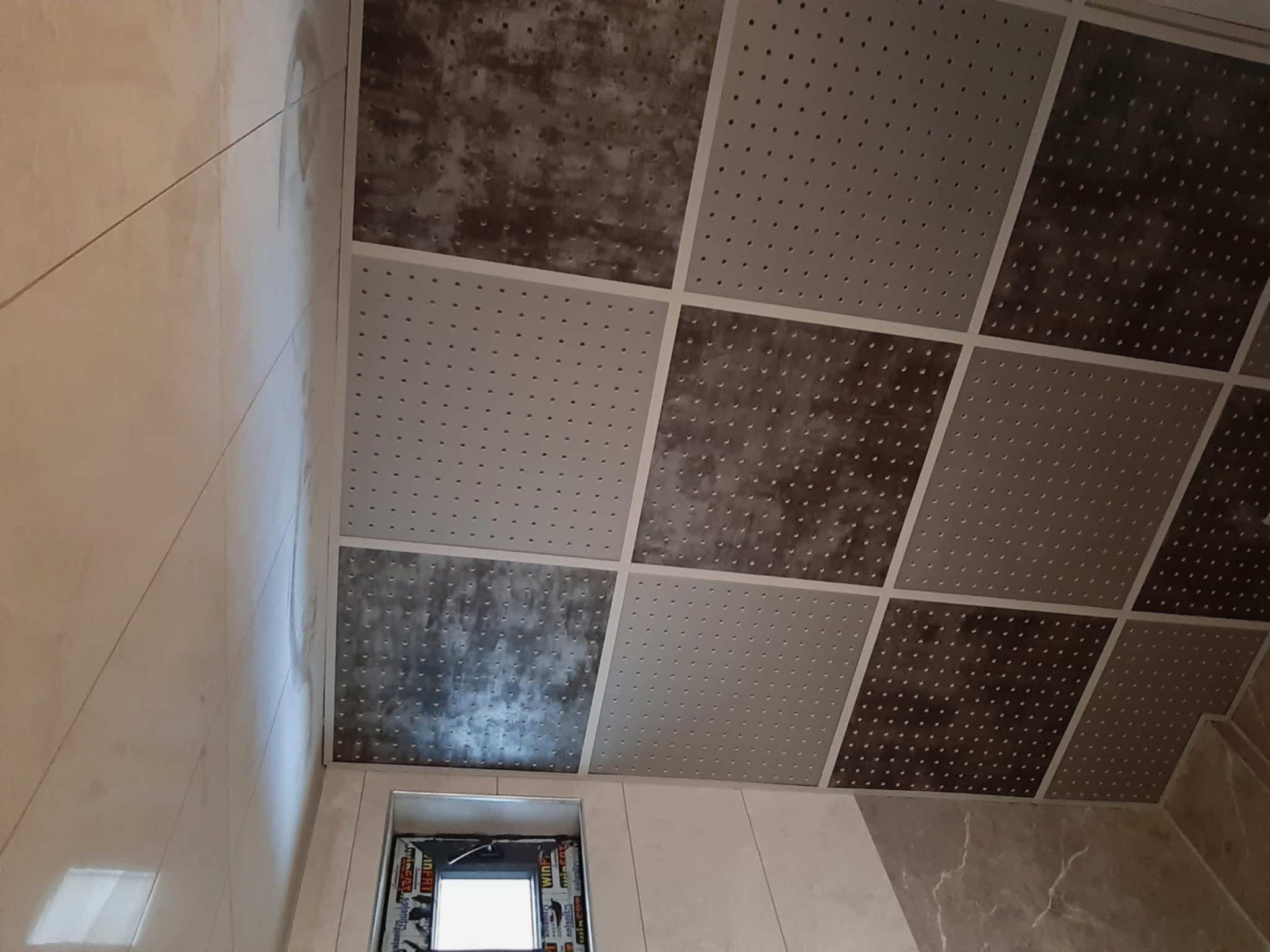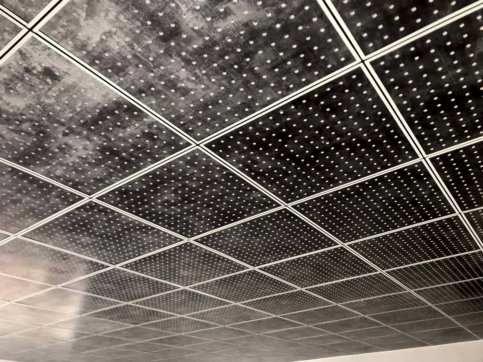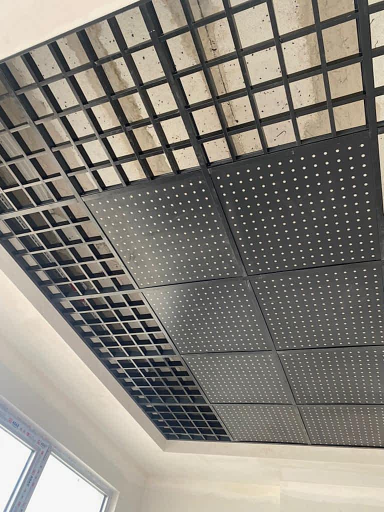 Arka Yüzü ve Kenarları Pvc Kaplı, Ön yüzeyi Fırınlanmış Ahşap Desen Lamineli Alçı Tavan Karosu Çevre alüminyum L profil, çevre duvarları üzerine hortum terazisi ile işaretlenen çizgi üzerinden dübel ve vida ile sabitlenir. Askı çubuklarının yerleri 120cm. aralıklarla tavanda (aydınlatma, seslendirme benzeri tesisatlar dikkate alınarak) yerleri belirlendikten sonra askı çubukları monte edilir. Ayarlanabilir çiftli yaylı maşa askı çubuklarına gerildikten sonra ana taşıyıcı T profili yaylı maşaya asılır. Karolajı oluşturan 120mm.\'lik ve 60mm.\' lik ara taşıyıcı T profillerin montajı yapılır. Ön Yüzeyi Fırınlanmış Ahşap Desen Alçı tavan karosu